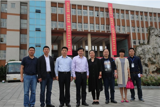 △湖南師大附中校長(zhǎng)謝永紅(左四)、湖南師大附中博才實(shí)驗(yàn)中學(xué)校長(zhǎng)蘇建祥(左三)、湖南瀟湘晨報(bào)傳媒經(jīng)營(yíng)有限公司黨委書(shū)記郭谷斌(右四)等都觀摩了今天的大賽。