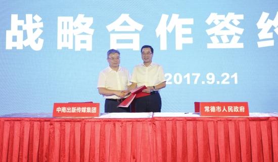 9月21日,2017常德旅游節(jié)“親親常德,浪漫之旅”推介會(huì)在常德舉行。常德市人民政府副市長(zhǎng)涂碧波與中南出版?zhèn)髅郊瘓F(tuán)股份有限公司董事、總經(jīng)理丁雙平簽署戰(zhàn)略合作協(xié)議。