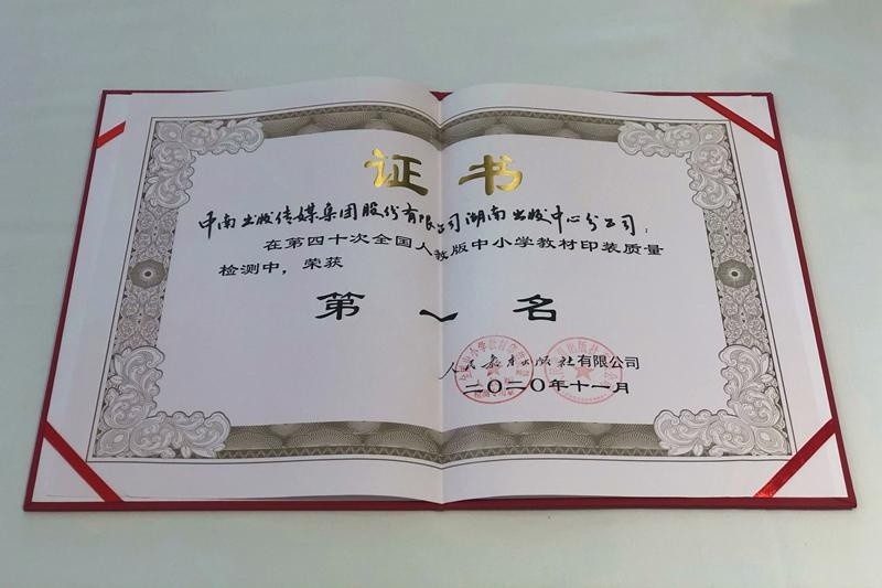 11 月 22 日,第 40 次全國(guó)人教版中小學(xué)教材印裝質(zhì)量檢測(cè)工作會(huì)議在廣西南寧召開(kāi),中南出版?zhèn)髅郊瘓F(tuán)股份有限公司湖南出版中心分公司蟬聯(lián)全國(guó)人教版中小學(xué)教材印裝質(zhì)量檢測(cè)第一名,這也是繼 2008 年獲得全國(guó)教材質(zhì)量檢測(cè)第一名后,湖南第三次獲此殊榮。
